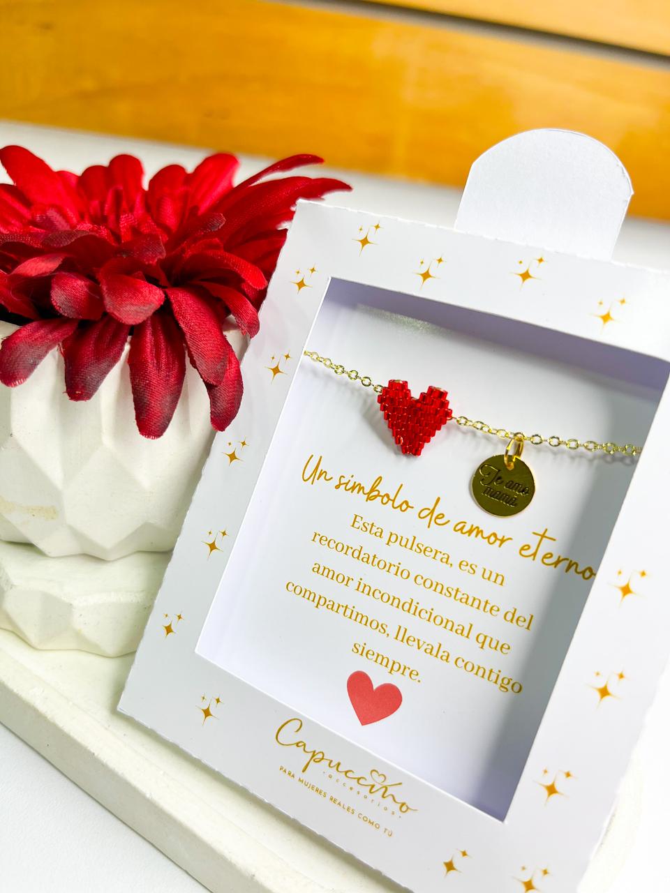 El mejor simbolo de amor para Mamá, esta hermosa pulsera tejida a mano con una placa que lleva un tallado que dice TE AMO MAMÁ le recordara a ese ser tan especial que llevara un simbolo de amor eterno.